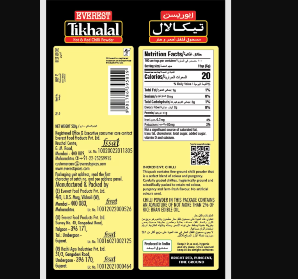 Everest Tikhalal Mirch Powder is a fine-ground chilli powder that is a perfect blend of colour and pungency. Chilli is a heating spice and comes in a wide variety of shapes, sizes, colours, and degrees of pungency. Chilli is America’s most important contribution to the world of spices, though today it is one of India’s major export attractions. Indian chilli is grown in Andhra Pradesh, Maharashtra, Karnataka, Madhya Pradesh, Tamil Nadu and a number of other States. The highly pungent ‘Guntur’ and the mildly pungent ‘Byadgi’ chillies are internationally recognised as the finest in quality.